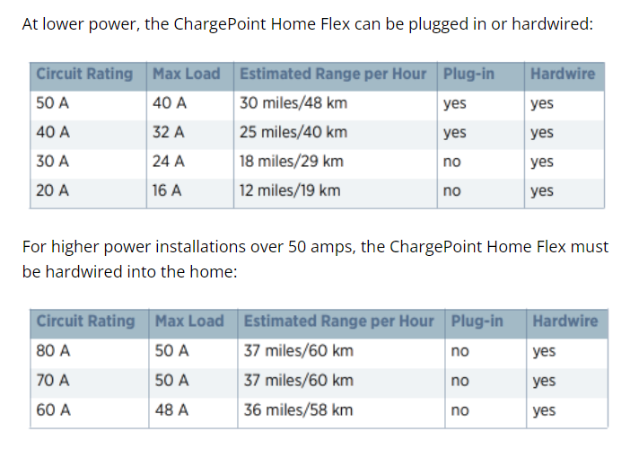 The ChargePoint Home Flex is easy for any electrician to install indoors or out. Plug-in installation with NEMA 6-50 or 14-50 outlet requires circuits rated 40A or 50A. For other circuit ratings, the plug is easily removed for hardwired installation. Set the charging amperage that's right for you and your home, helping to avoid electrical upgrades.
